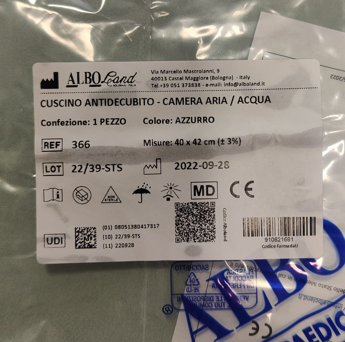 With inner tube and water. Indicated for the prevention and treatment ofPressure sores for prams and comfortable.