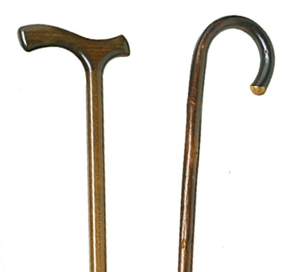 With umbrella handle, unisex, with ring, in dark polished wood.