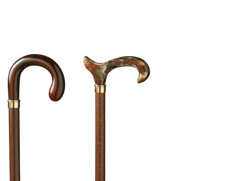 With umbrella handle, unisex, with ring, in dark polished wood.