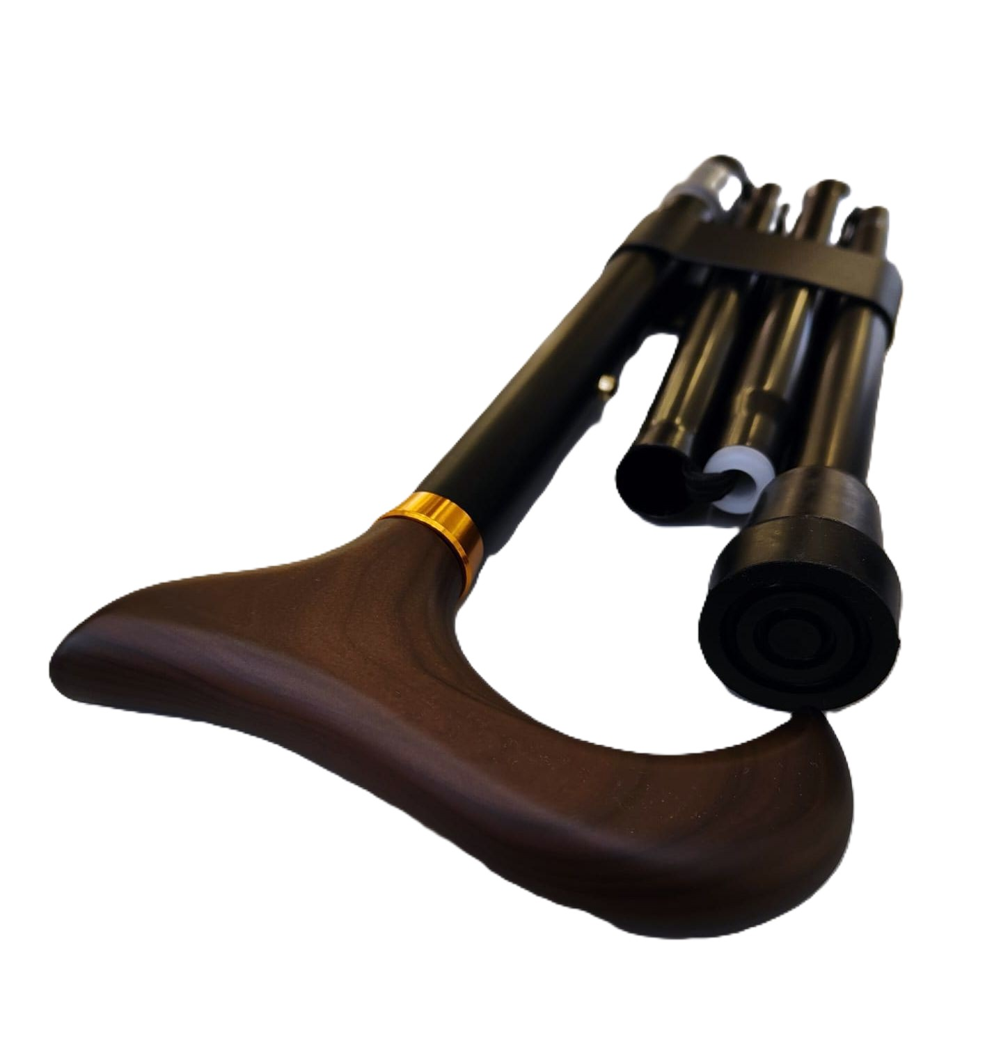 - With wooden handleAnd ‘T’, black aluminium barrel
