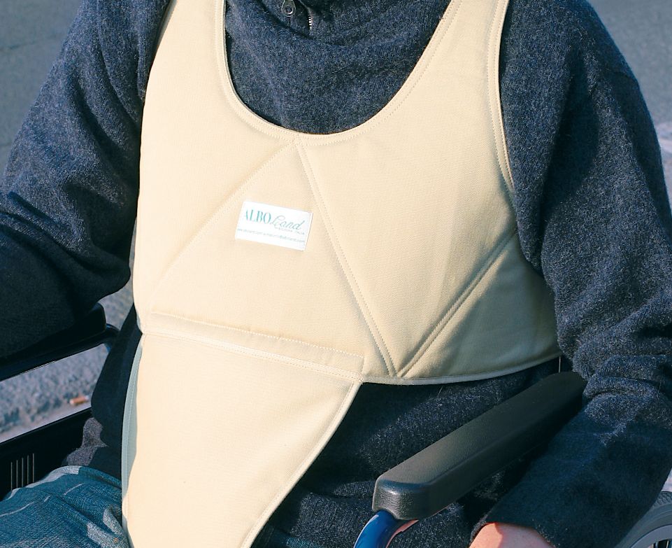 With suspenders to ensure the correct posture and with pelv treatmentIco to avoid sliding forward of the torso