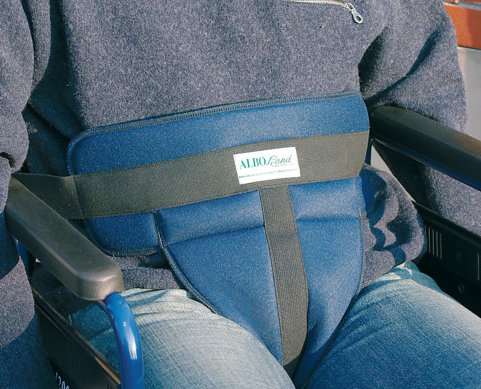 With pelvic restraint to prevent slipping