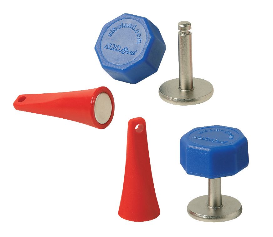 - Polycarbonate/ABS button, with internal mechanism and locking on stainless steel pin.Polyamide wrench with 8mm thick reinforced neodymium magnet