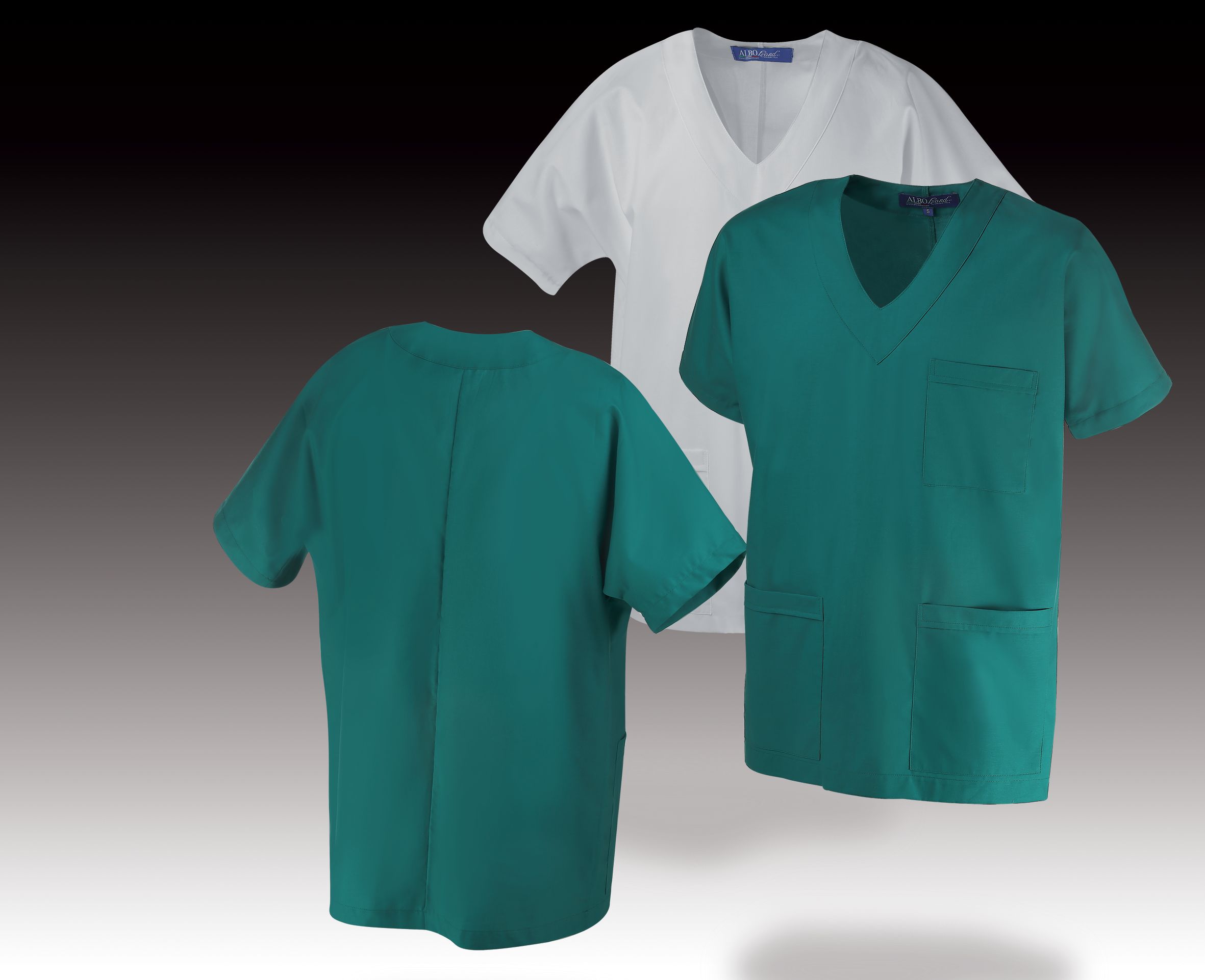 V-neck without openings, exclusively short sleeve with wide round aKimono, two pockets and a pocket.